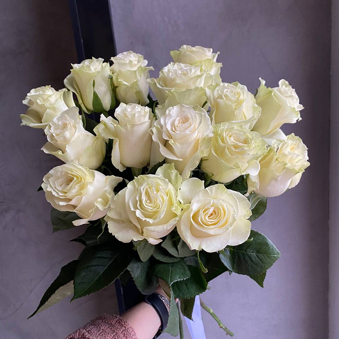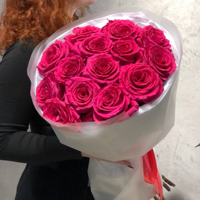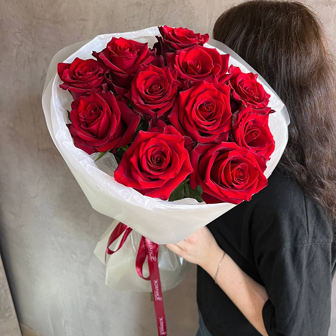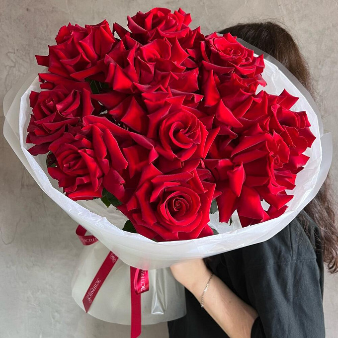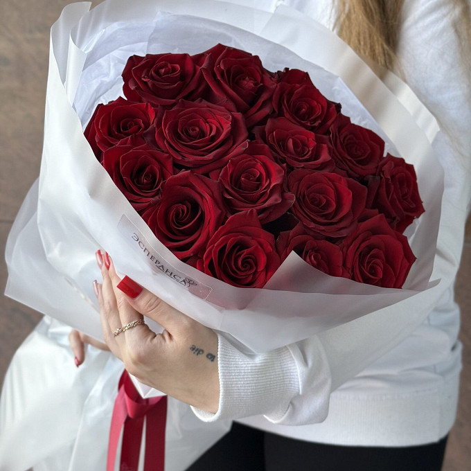 15 красных роз Кения, 50 см в белой матовой плёнке
