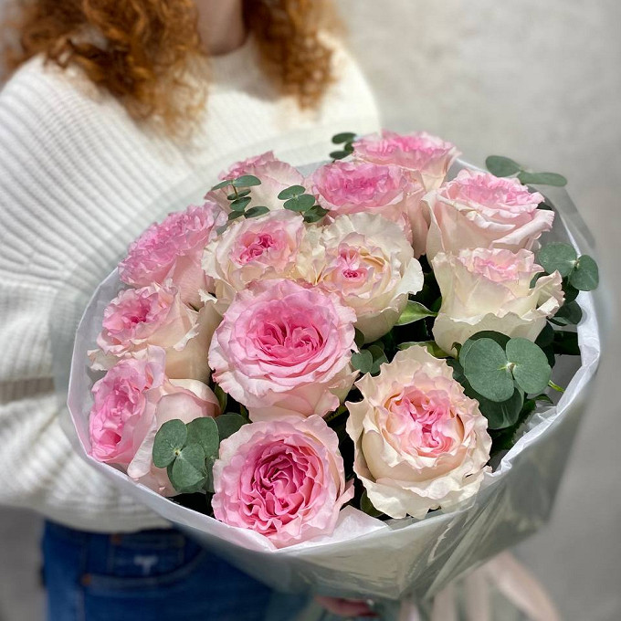 15 🌿 ароматных пионовидных роз Канделайт с эвкалиптом